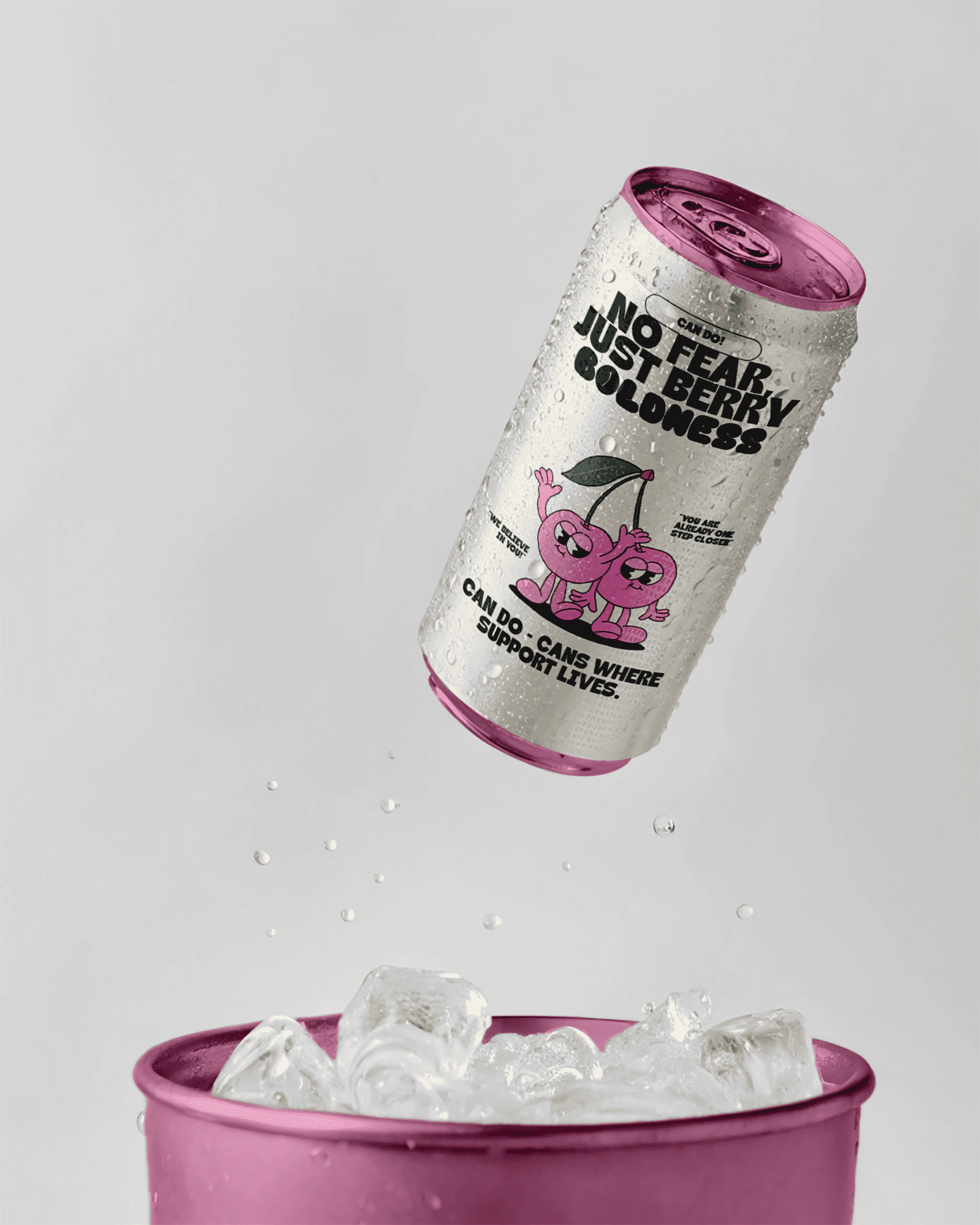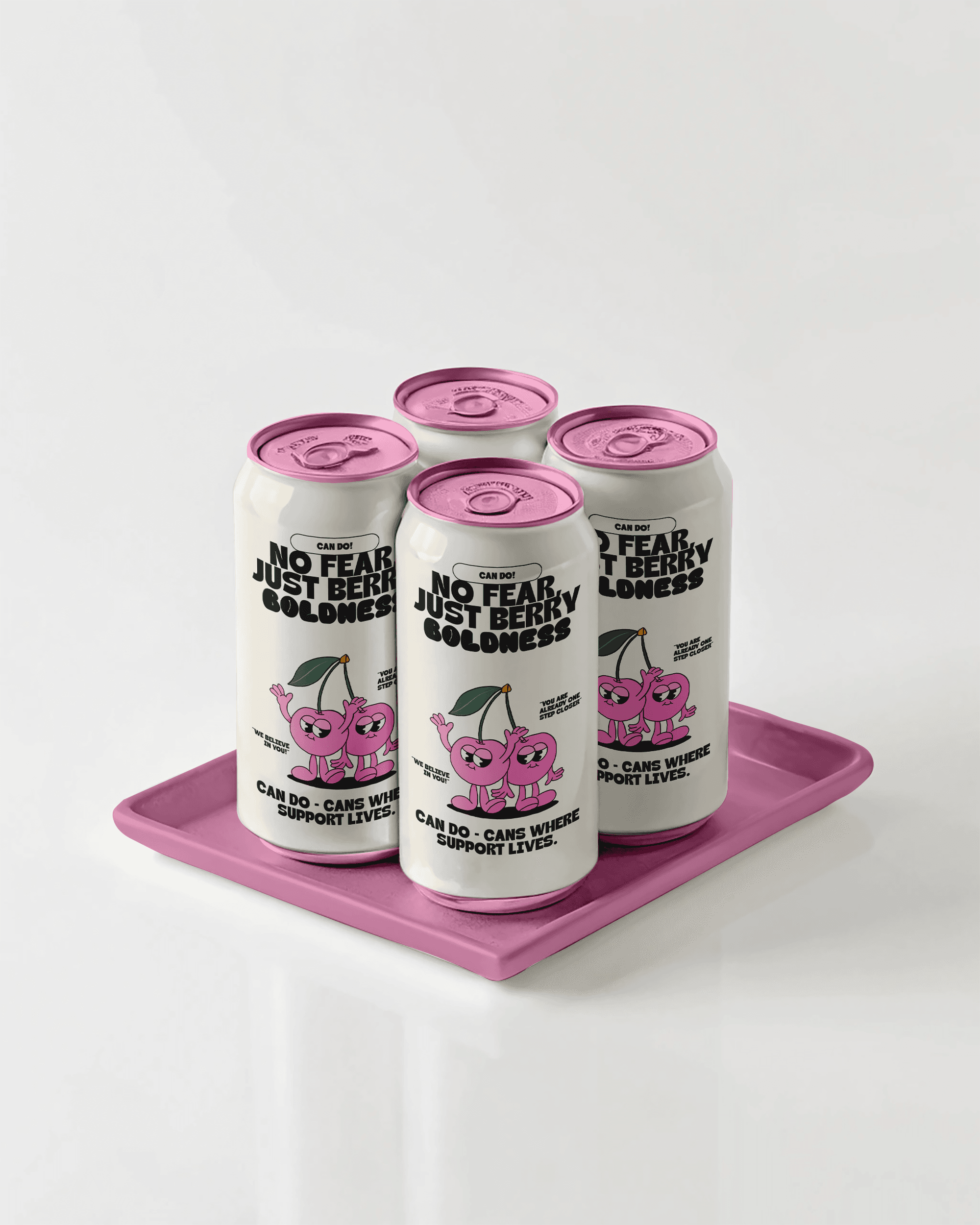 The Can Do brand identity was built to be bold, uplifting, and full of personality. The design features playful illustrated fruit characters that instantly communicate flavor while creating an emotional connection with the consumer. A clean white background ensures the vibrant illustrations and large, confident typography stand out, giving the cans a modern and approachable look.