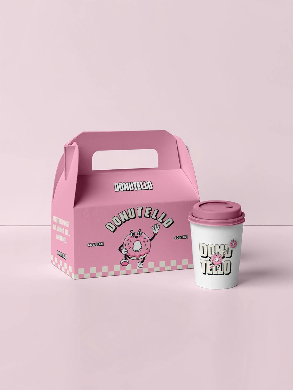 The design was applied consistently across packaging — from takeaway boxes to coffee cups — ensuring strong brand recognition. The mascot illustration was refined to be easily reproducible across different formats, and the color scheme was tested to keep the pink vibrant on various print materials. The brand tone embraces humor and lightheartedness, making every customer interaction feel joyful.