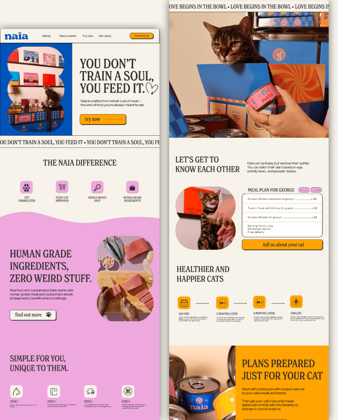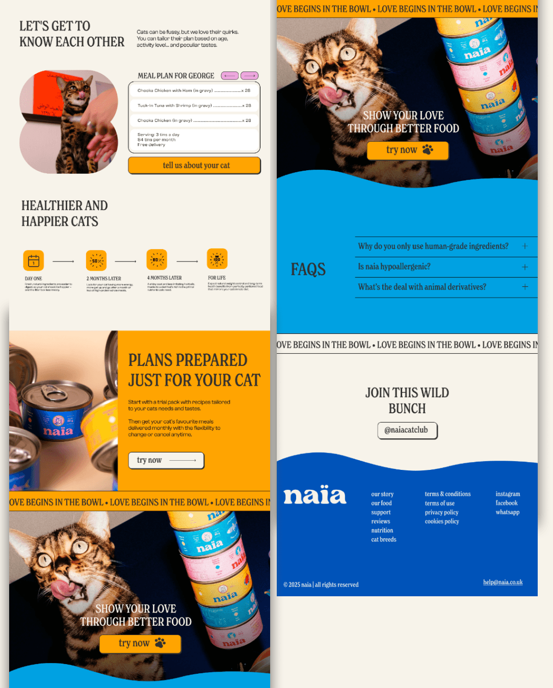 For this project, I designed a modern, character-driven website for a premium cat food brand. One of the key goals was to communicate a friendly, warm, and approachable tone, making the brand feel caring and human rather than overly corporate.