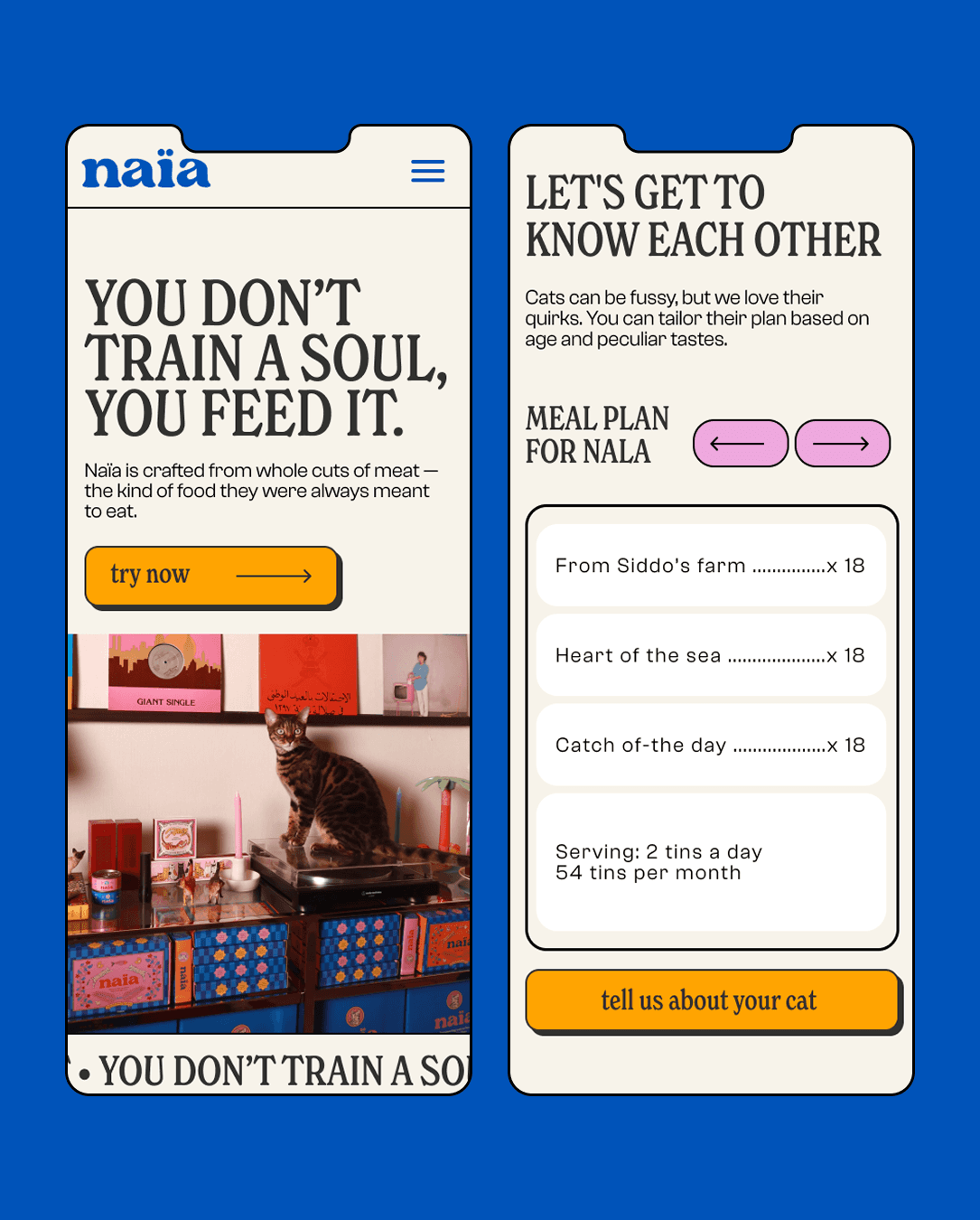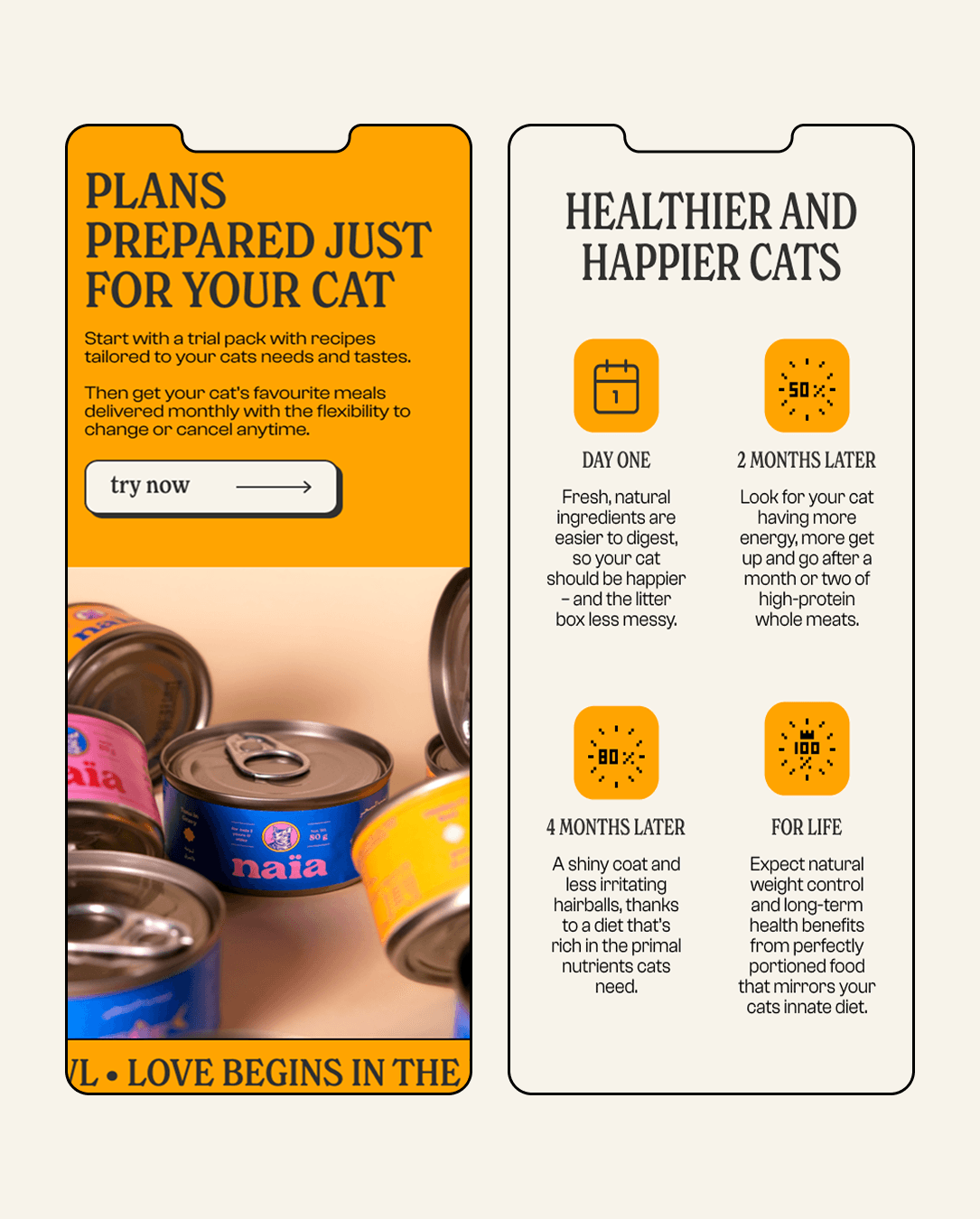 I designed 3 core pages with full adaptation for desktop and mobile, focusing on clear storytelling, expressive typography, and playful yet refined visuals. The design highlights the emotional bond between cats and their owners while reinforcing trust, quality, and transparency.