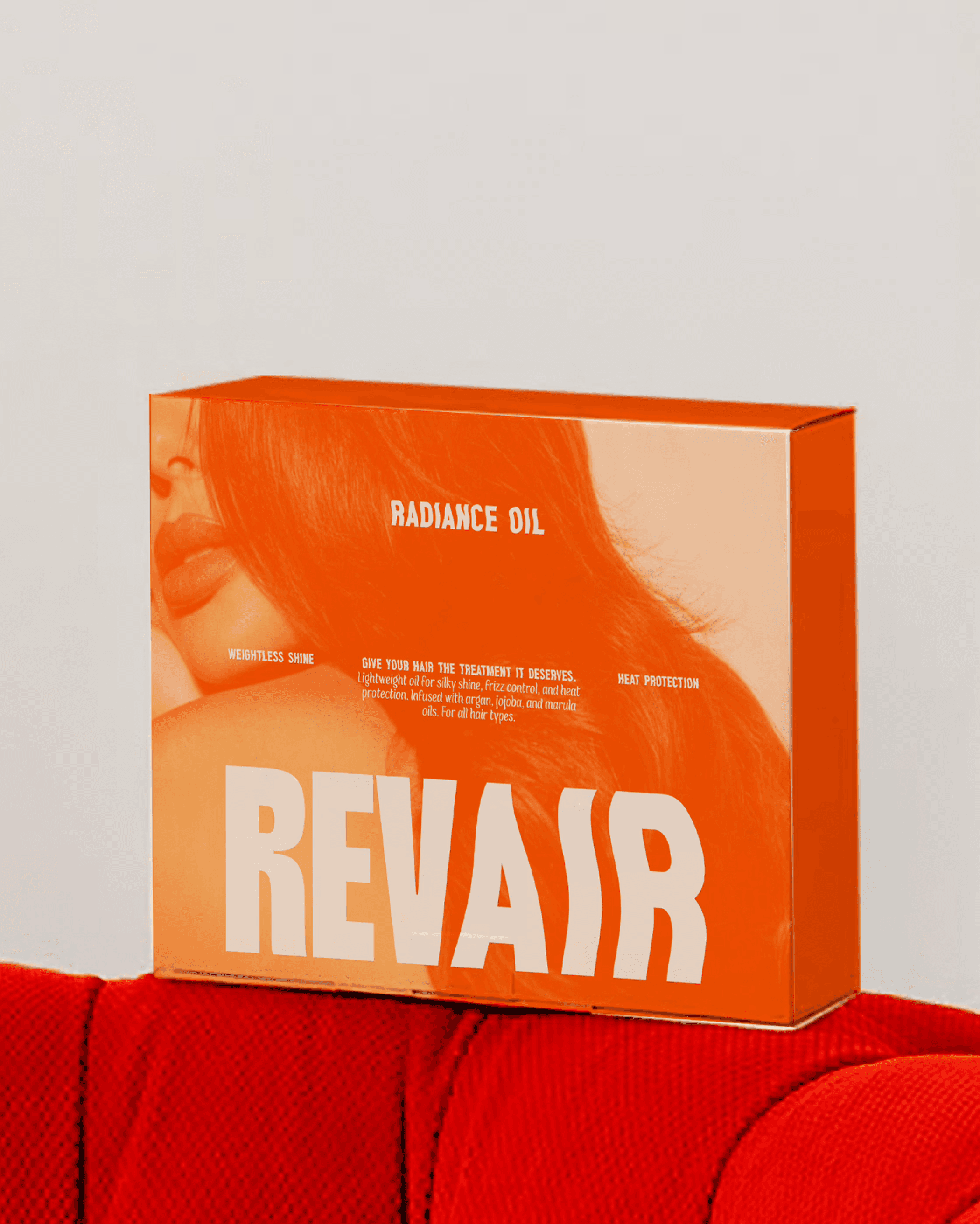 The creative direction for RevAir was guided by the need to visually convey innovation, energy, and professional haircare expertise. A bold, vibrant orange was chosen as the primary brand color to evoke vitality and warmth, paired with oversized, curved typography for a dynamic, modern feel. The packaging layout was kept clean and minimal, ensuring key information stood out while maintaining a premium look.
