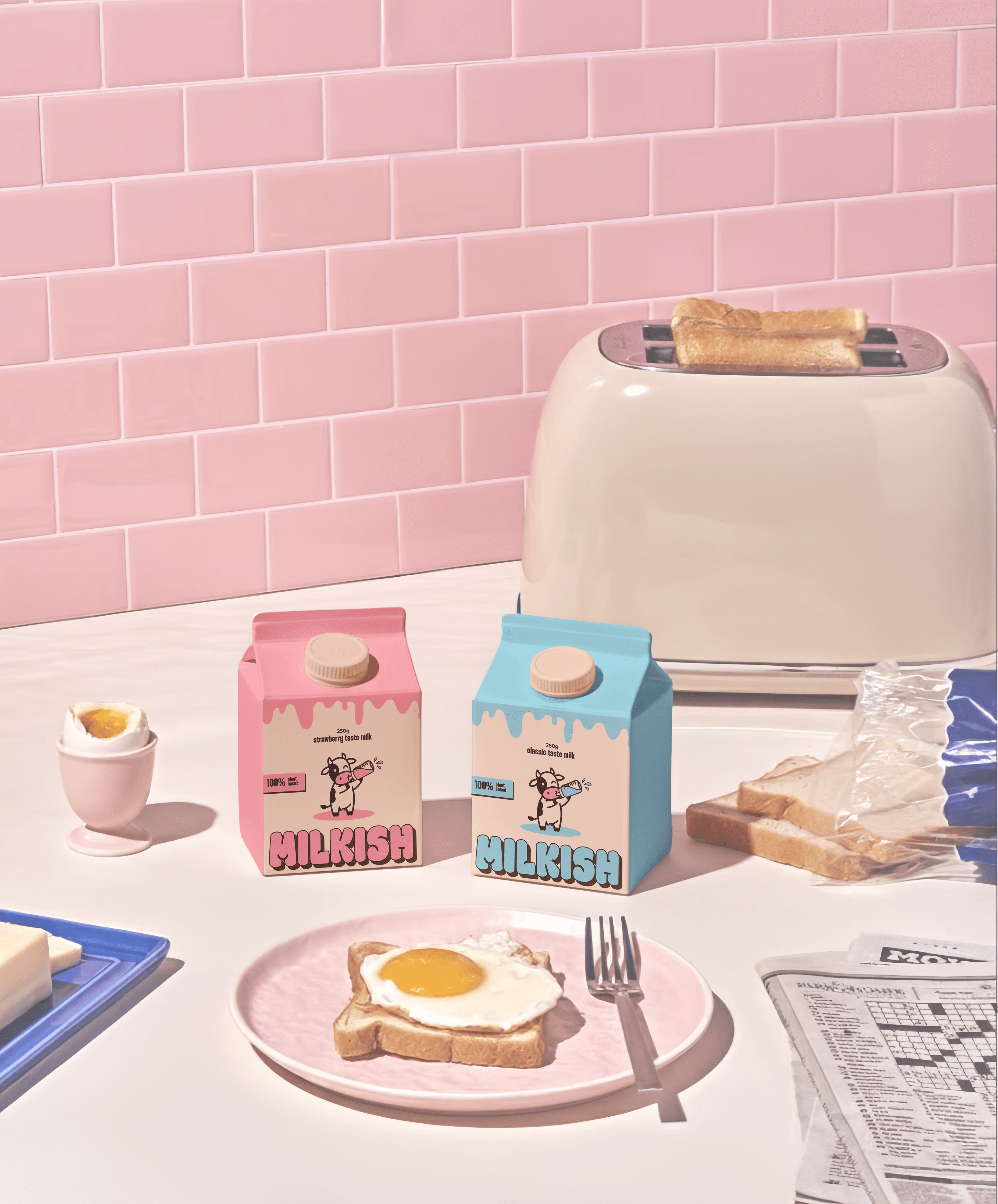 For Milkish, I created a playful yet polished brand identity focused on warmth, friendliness, and everyday joy. The goal was to make plant-based milk feel approachable, fun, and emotionally engaging while still looking thoughtfully designed.